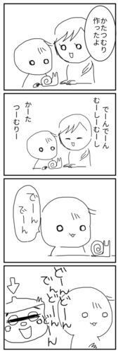保育園の先生から聞いたエピソードです 右の人が先生です(かわいい) でんどんマンになっちゃった。 関係ないですが、母子で同時に結膜炎になりました。 木曜の四時ごろから目ヤニが大量に出始め、翌朝二人とも目が開かない事態に…! その後病院に行く時に…