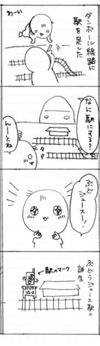 キラキラ顔で言ってくれました。 うららちゃんシリーズの「でんしゃにのって」が大好きで、 ぞうだ駅、わにだ駅、おばけ駅、とか色々言っていて 創作でうさぎさん駅、きりんさん駅とかで遊んでいたので、 てっきり何かの動物+駅を言ってくれるかと思って聞…